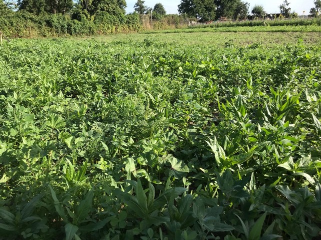 Wir haben viele Kulturen von der Gärtnerei auf den Acker verlegt, um den Gärtnerei-Flächen eine nötige Ruhe zu gönnen. Auf dem Acker herrschen schwierigere Wachstumsbedingungen als in der Gärtnerei. Diese versuchen wir durch ein Anbausystem abzumildern, das für uns neu und noch nicht etabliert ist. Die Kombination hat einiges versemmelt, was jetzt fehlt. Wer mehr über die Notwendigkeit von Gründüngung und den Unterschied zwischen Gärtnerei-Flächen und Acker wissen will, liest unten weiter im 3. Abschnitt.