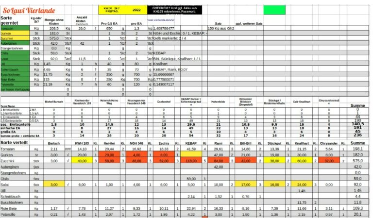 Daneben erreichen uns immer wieder Fragen zur Ankündigung der wöchentlichen Ernte und der Verteilung. Darauf gehe ich heute mal ausführlich ein. Wer‘s kurz will, liest die Kurzversion, wer mehr wissen will, liest den ausführlichen Teil.